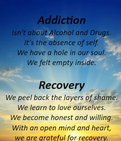 "From the isolation of our addiction, we find a fellowship of people with a common bond...